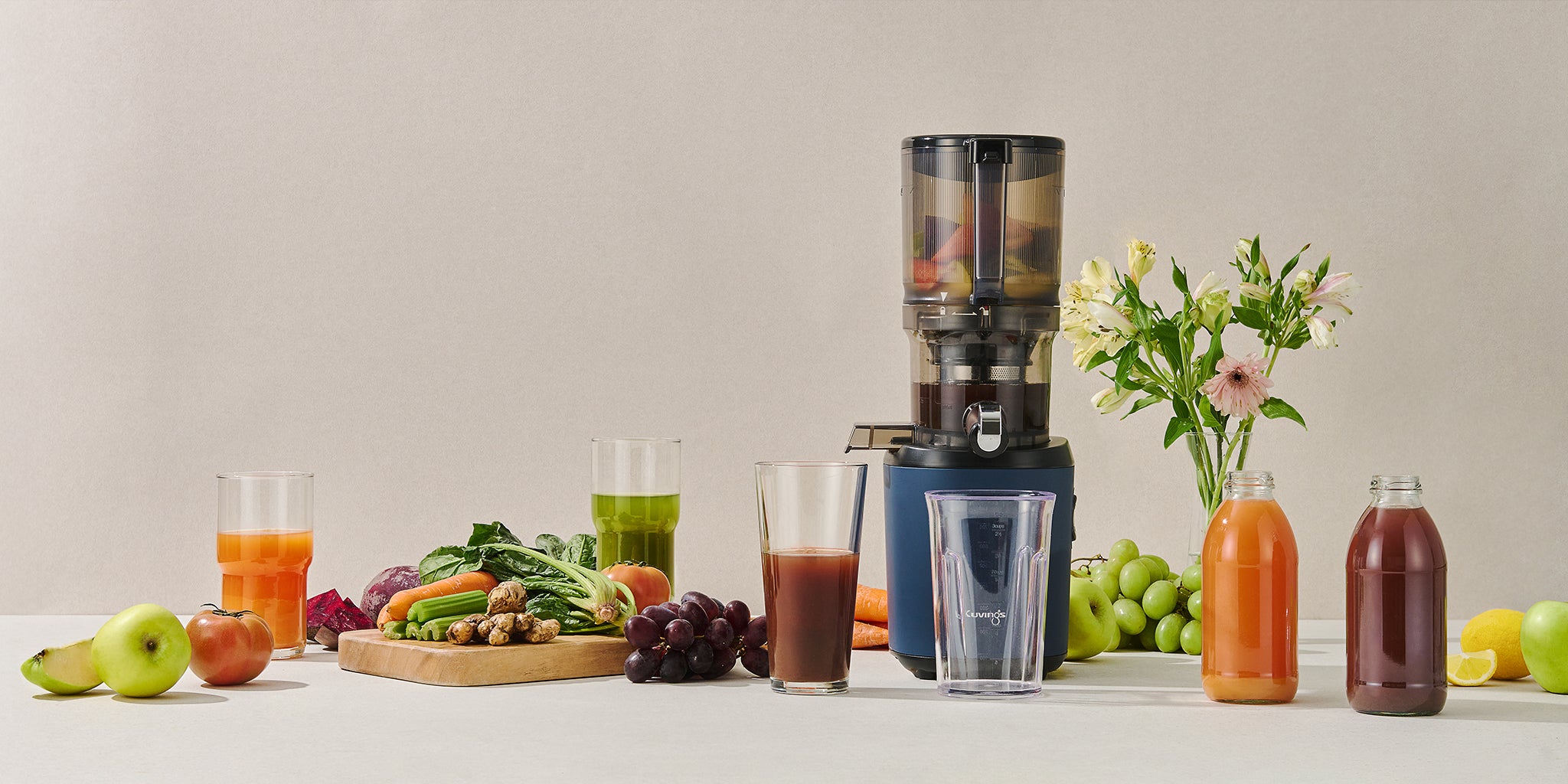 Kuvings whole slow juicers gently squeeze and press at a leisurely 50~60 RPM, preserving the good stuff nature packed into your fruits and veggies.