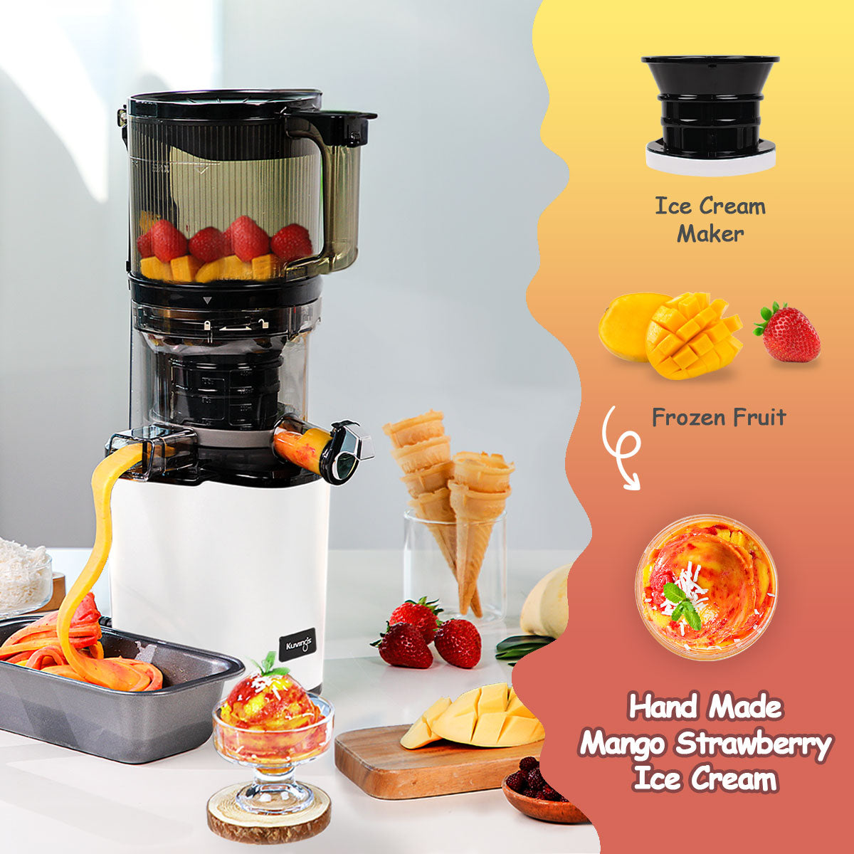 The Ice Cream Maker, also known as the blank strainer, efficiently crushes and blends ingredients to create a smooth and creamy sorbet texture. Unlike juicing or smoothie makers, it features a hole-free design.