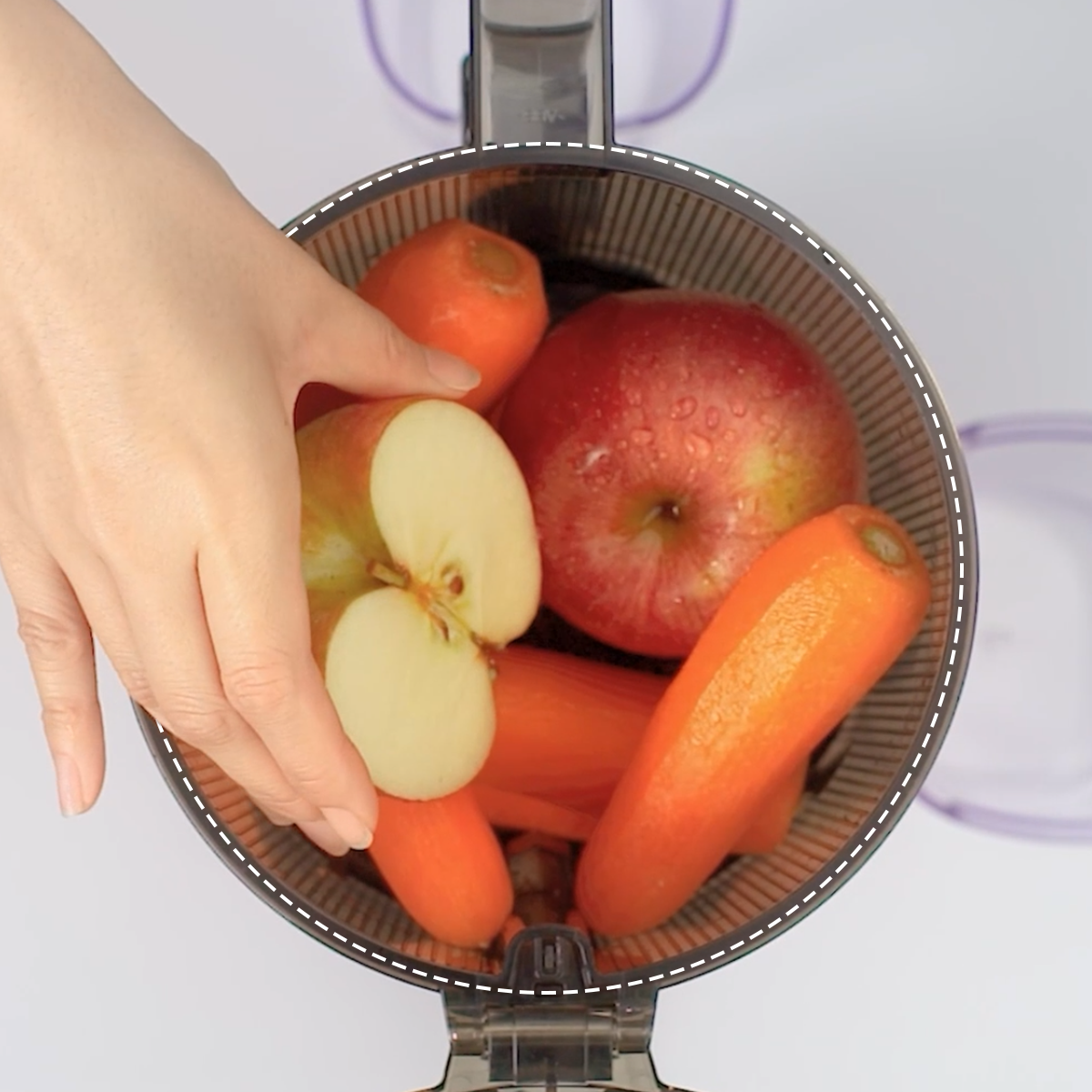 Optimized for carrots and celery, the REVO830 features a new Auto-Cut Chute that automatically chops long, fibrous ingredients. The bladeless chopping mechanism cuts and presses perfectly-sized pieces at a time, minimizing food waste while maximizing juice yield.