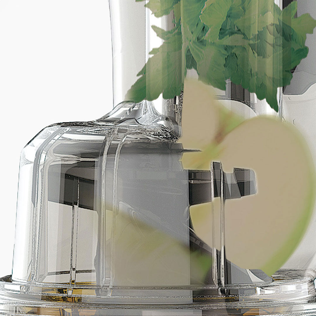 When you put fruit and veg in a juicer machine with rapidly spinning blades, those blades act like a machete - tearing up the fruit and veg and shredding it so you get the juice. As the blades rotate in the bowl, the juice is separated into the press bowl and the pulp ends up as waste (or compost) in the pulp bowl.