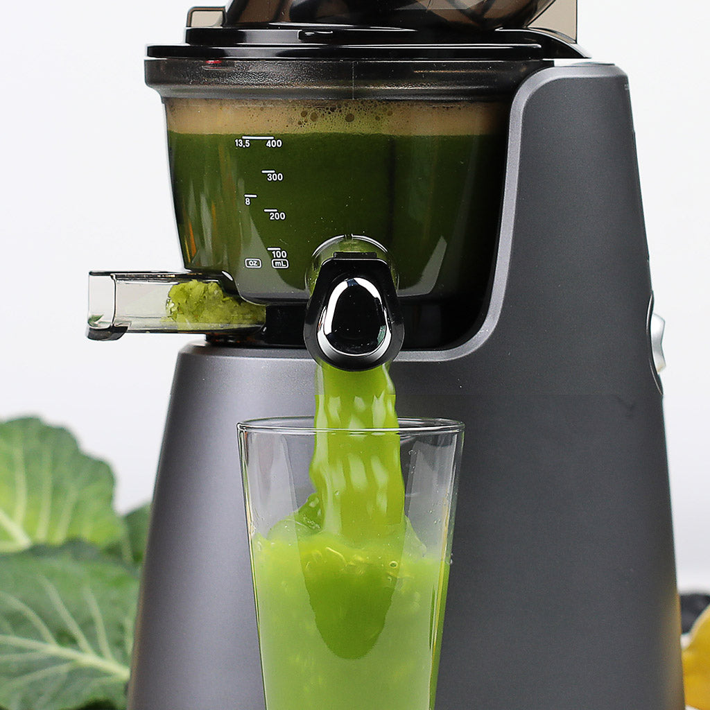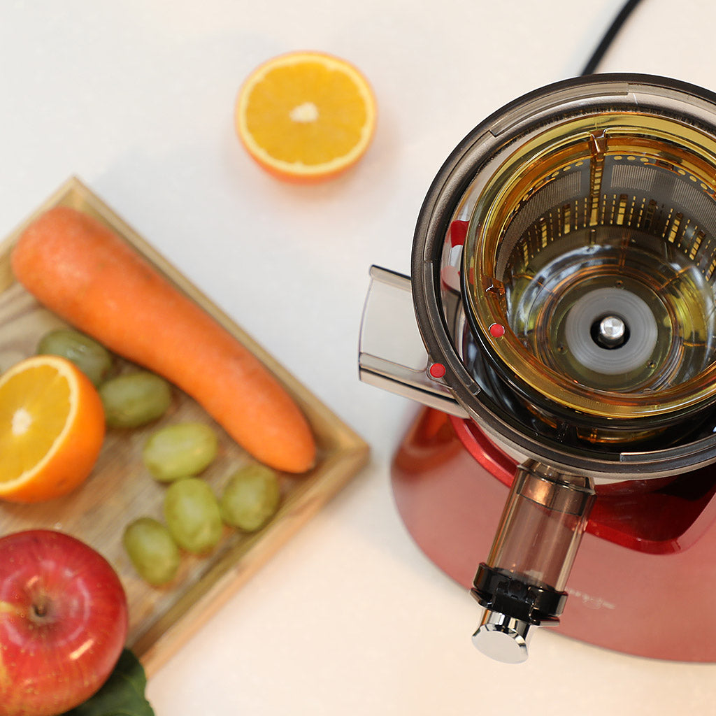 The 82mm feeding chute, which is wider than the existing models can let putting larger ingredients without cutting, leading to fast juicing.