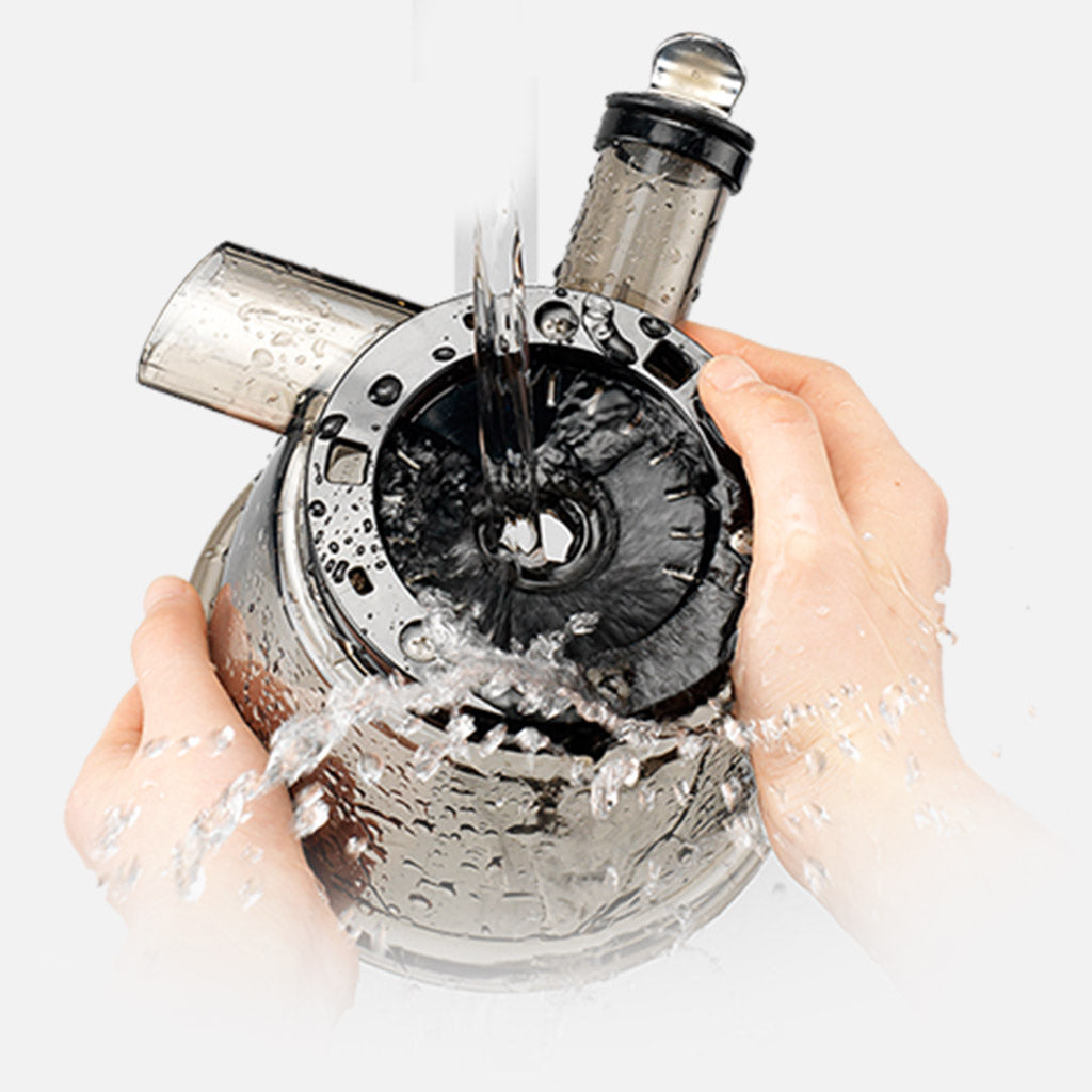 Effortlessly remove residue by combining the rotating cleaning brush with the juice strainer and twisting them together.