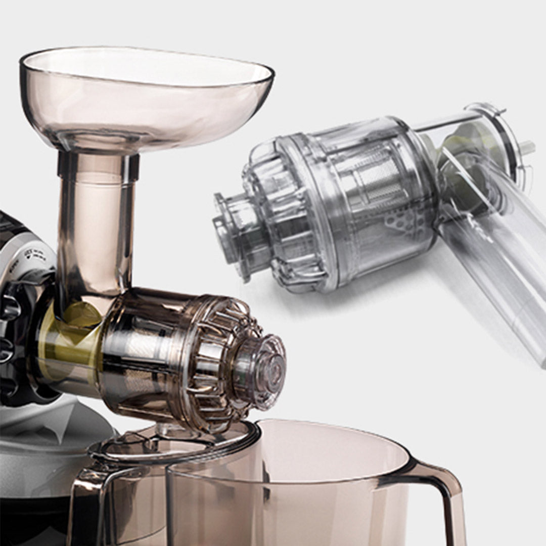 The 3D screw has been upgraded with an auto-cutting feature which allows for more efficient juicing and a richer juice.