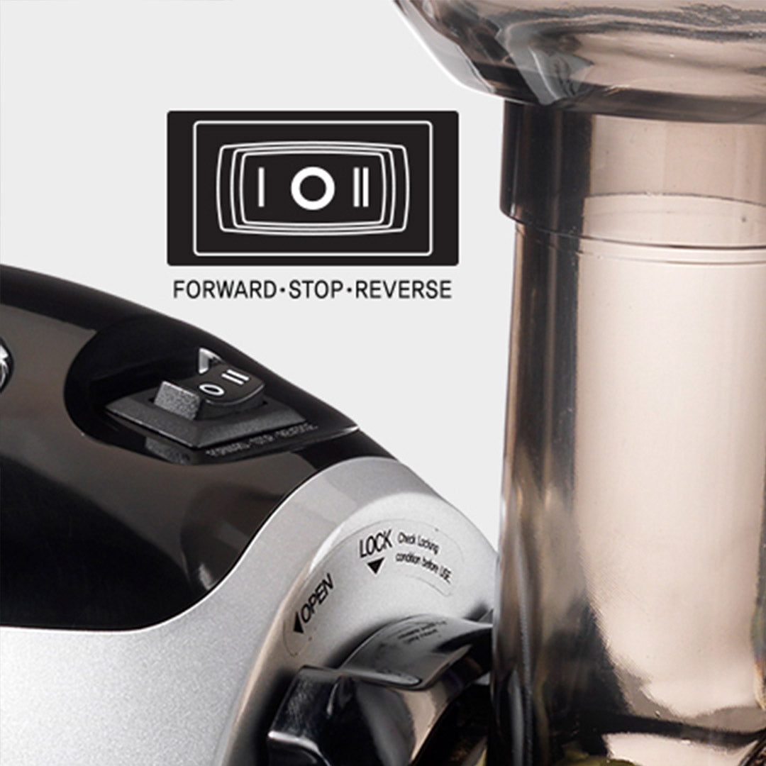 Built-in cord storage, compact size, handle, and a cover make it convenient to store this juicer. You can control the direction in normal/reverse motion to prevent clogging. Turn in a reverse direction to remove what is caught inside.