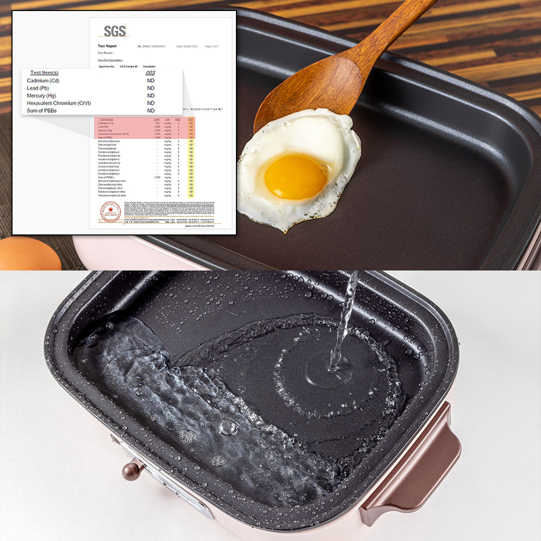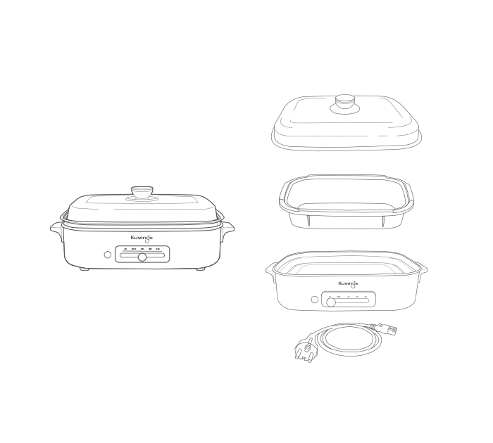 | Weight | Body : 2.1 kg (Lid : 0.4 kg), Flat plate : 0.6 kg, Deep plate : 1 kg, Dessert plate : 0.6 kg, Steam grill plate : 0.9 kg, Couple plate : 0.6 kg, Takoyaki plate : 0.8 kg |