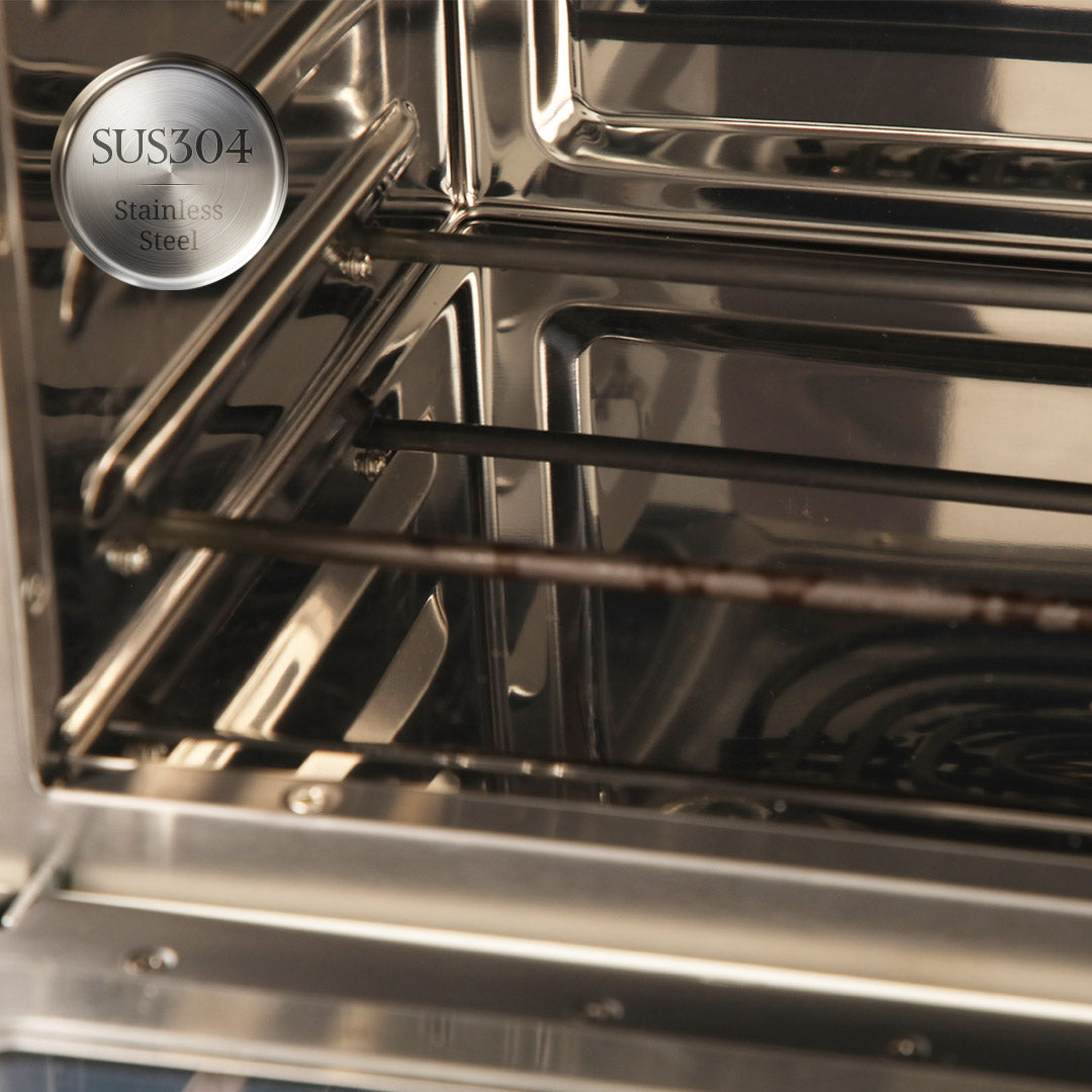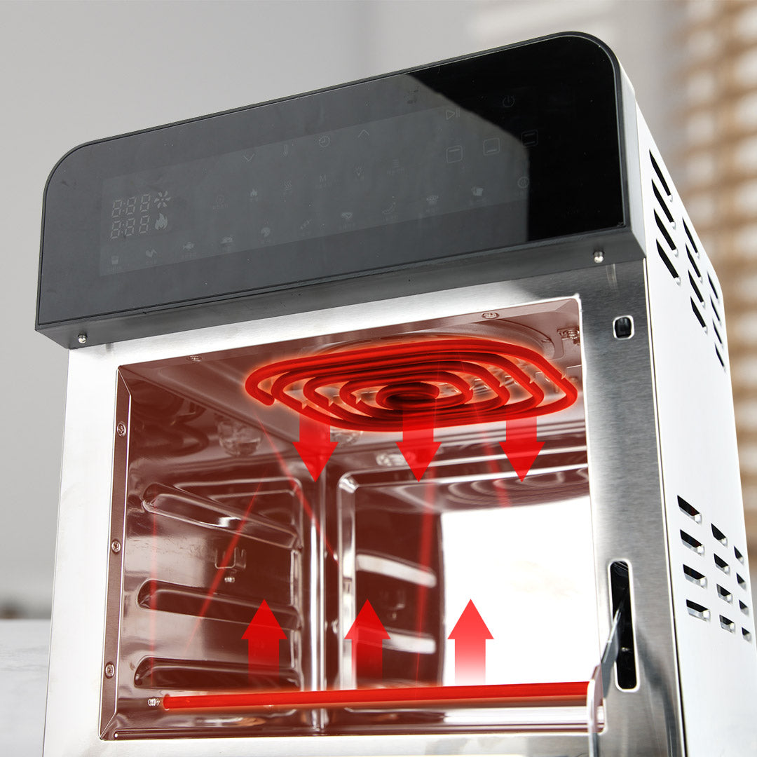 The transparent window lets you keep an eye on your food as it cooks evenly with dual top and bottom heating.